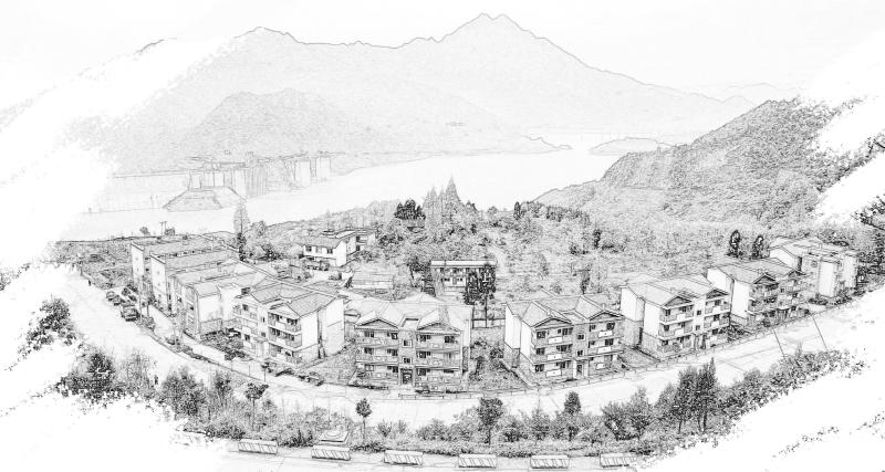 都江堰龙池镇积极引入资金投入农房重建,图为紫坪铺水库旁新建的茶观新村。