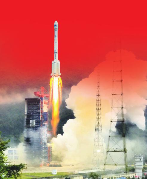 在西昌卫星发射中心,用长征系列运载火箭发射北斗导航卫星。