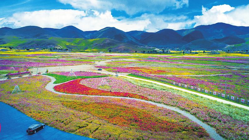 2018年9月,距甘孜州稻城县城7公里的色拉乡八美村山谷,1500余亩格桑花开成壮美“花海”。而这里以前曾经是沙化严重的低效益牧场。