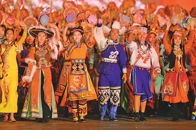 我们用歌声表白——《好儿好女好家园》揭开一幅万众齐心、国泰民安的壮美画卷;《赞歌》《唱支山歌给党听》《北京的金山上》《青春舞曲》《红太阳照边疆》《只有山歌敬亲人》《花儿与少年》……一曲曲熟悉的旋律,演绎56个民族的肺腑心声。