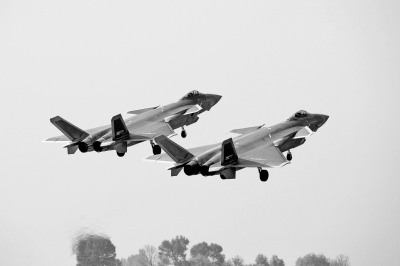 中国空军歼-20战斗机双机编队起飞。光明图片/视觉中国