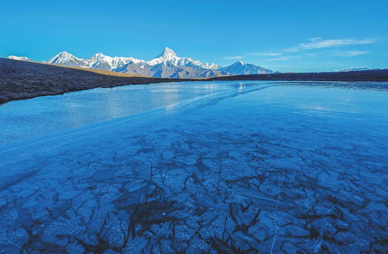 “蜀山之王”贡嘎雪山主峰海拔7556米,周围海拔达到6000米以上的就有45座,形成了群峰簇拥、雪山相接的雄伟景象。本报记者尹钢摄