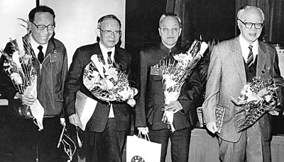 图为王大珩(左二)、王淦昌(右一)、杨嘉墀(右二)、陈芳允(左一)。资料图片