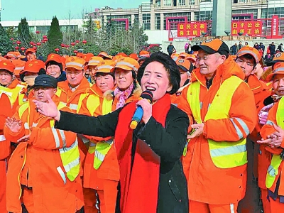 贠恩凤为环卫工人演唱《山丹丹开花红艳艳》。