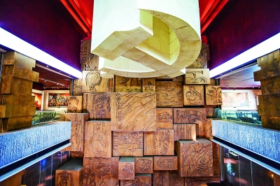大千世界,泱泱古国;至苦至艰,至善至德。铁肩担道义,柔肠系万民。昔日,救国家于水火,拯黎民于仁寿;今天,图民族之复兴,谋世界之和平。坚持实事求是,天地清明而育苍生;一心服务大众,日月炫朗而百业兴。强筋壮骨,清风正气;行端表正,凝聚人心。绘宏图大业,深化改革;圆百年梦想,举国铭志。天人合一[45],小小寰球大智慧;文明雄狮[46],赫赫华夏领路人。
