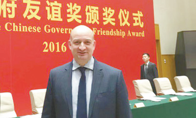 图为大卫·安德鲁·菲尼克斯获得2016年中国政府友谊奖时留影。资料图片