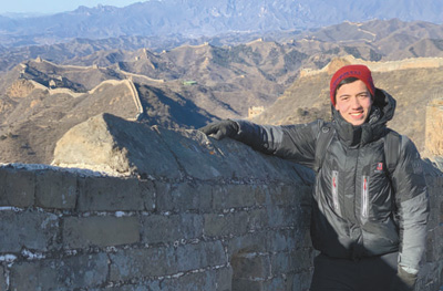 图为汤米·林赛在长城。资料图片