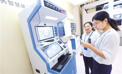 郑州国际会展中心,参观者在使用多功能政务自助机办理证照。张涛摄 光明图片/视觉中国