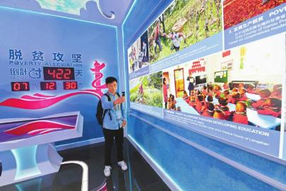 脱贫攻坚是幸福中国的生动诠释。一块脱贫攻坚倒计时422天的标识牌引发围观,展示的脱贫攻坚8项主要成果中,四川占有两席。作为教育脱贫的成果,一张照片展现了凉山州昭觉县幼教点辅导员带领幼儿学习普通话的场景;严把贫困退出关,另一张照片则展示了第三方评估团队在甘孜州康定市开展贫困县退出抽查的场景。