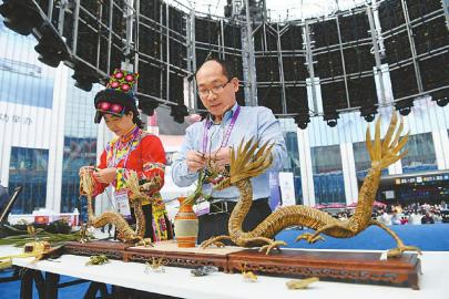 11月7日12时30分,第二届中国国际进口博览会展馆的中心广场,来自我省的3项非物质文化遗产项目的现场表演赢得阵阵掌声。