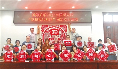 厦门大学国际关系学院、南洋研究院教工党支部开展“我和我的祖国”主题党日活动。资料图片