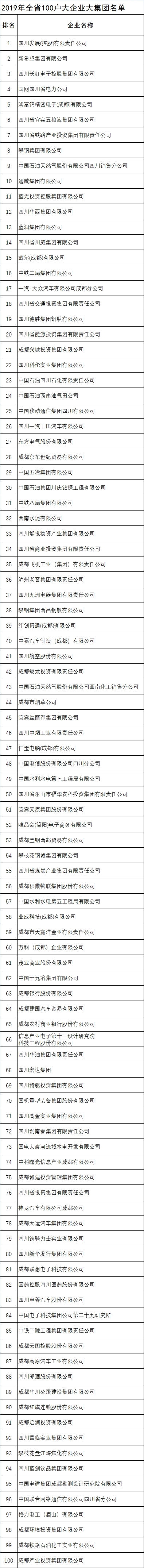 四川在线消息(记者 朱雪黎)近日,省经济和信息化厅通报2019年四川企业百强榜单,营业收入过百亿元企业达68家。