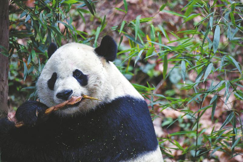 11月21日,大熊猫“贝贝”在中国大熊猫保护研究中心雅安碧峰峡基地吃竹笋。 本报记者何海洋摄