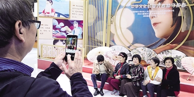第二届长三角文博会哔哩哔哩展位前,参观者拍照留念。本报记者 张春雷摄/光明图片