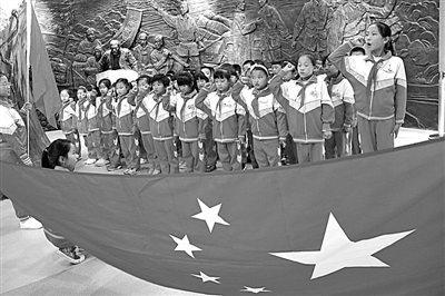 在威海红色革命教育基地,小学生举行入队仪式。宋永强摄/光明图片