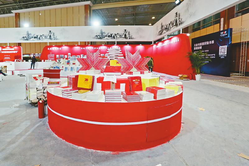 11月28日,2019天府书展已布好展,图为“诵读新时代礼赞新中国”主题出版物馆一角。 蒋翼鹏摄