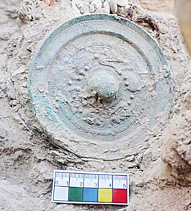 拉甫却克墓地出土的铜镜 本报记者 王瑟摄/光明图片