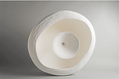 其三,跨界与新技术的运用为陶艺创作注入生机。展览中,许多作品不仅继承了传统陶瓷技艺的血脉,而且融入了现代艺术的精华,将现代设计、工艺和技术融入当代陶艺的创作中来,丰富了中国陶艺的创作手法和创新空间。在这一方面,很多年轻艺术家正在成长且颇具潜力。孙月作为此类年轻艺术家的代表,她的作品《静以致远——中国新化石》用地质学、考古学技术还原真实的地质地貌,游走在自然与人为的虚实之间,极富哲思性。她以更开阔的视角理解陶瓷艺术,观念和工艺均突破普通陶艺的单一思维,整件作品兼容了拉坯、修坯、注浆、翻模、绞泥、上色等复杂工艺,以超写实的手法呈现其研究的方法论,面貌独特而成熟。
