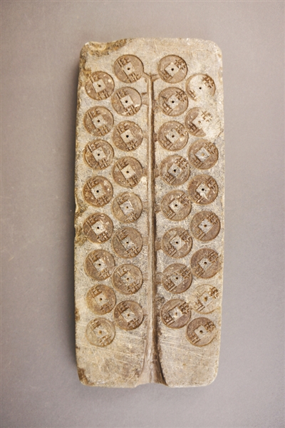 最后,来说说我自己。我呢,已经介绍过了,是汉代四铢钱范,半两钱中最规范的文帝四铢钱就是由我铸造出来的。我身上一共有32枚钱模,分四排分列在浇铸凹槽两侧,就像一棵结满钱币的大树,而我也的确是一棵人见人爱的“摇钱树”。我铸造出来的钱币形制规整、厚薄均匀,文字整齐匀称,书法纤细秀丽,完全符合文帝对四铢钱的要求。所以,能够拥有我的,即便不是西汉中央政府统治者,也是实力雄厚的藩国王侯。