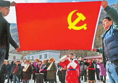 在黑水县维古乡开展的“感党恩、抓党建、促和谐”主题活动中,全体党员重温入党誓词。大家围绕推动“四好村”建设谈感想、说变化。本报记者 吴传明 摄(本报资料图片)