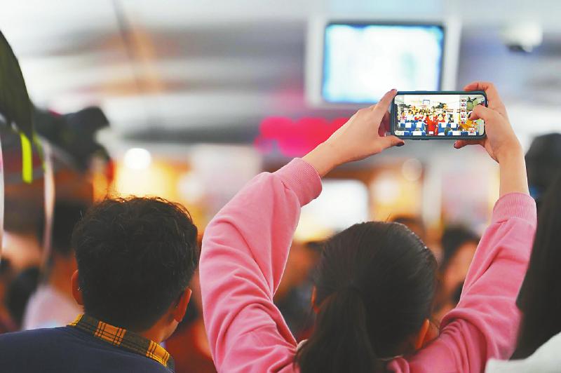 乘客举起手机拍下难忘的一刻。