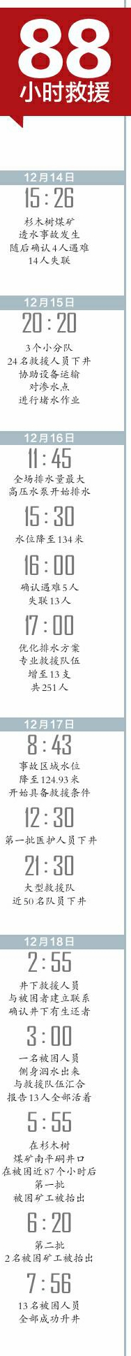 12月18日7:56,这一刻见证了生命奇迹。在被困80多个小时后,杉木树煤矿透水事故13名被困人员被确认生还,并全部升井救出。