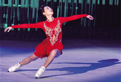 前花样滑冰国手张丹2019年主演原创冰上舞剧《踏冰逐梦》。朴学东摄/光明图片