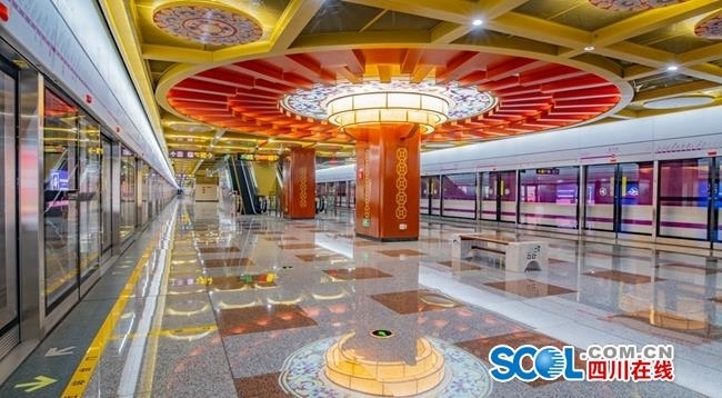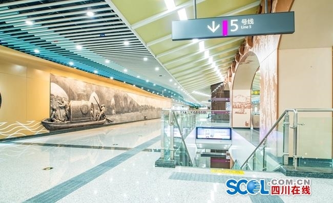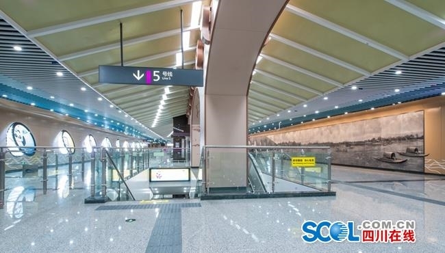 地铁5号线一二期贯通成都南北,北起新都区,南至天府新区,线路全长49.016公里,共设车站41座,其中地下站36座,高架站5座,换乘站13座,车辆段1座,停车场2座。5号线是中西部地区首条采用“8A”车辆编组的地铁线路,大幅提升了5号线运量,对缓解成都南北向的客运压力具有重要意义。线路车站装修以“芙蓉锦绘”为文化主题,普通标准站27座、文化艺术站9座、重点艺术站5座,分别为皇花园站、青羊宫站、抚琴站、锦城大道和二江寺站。