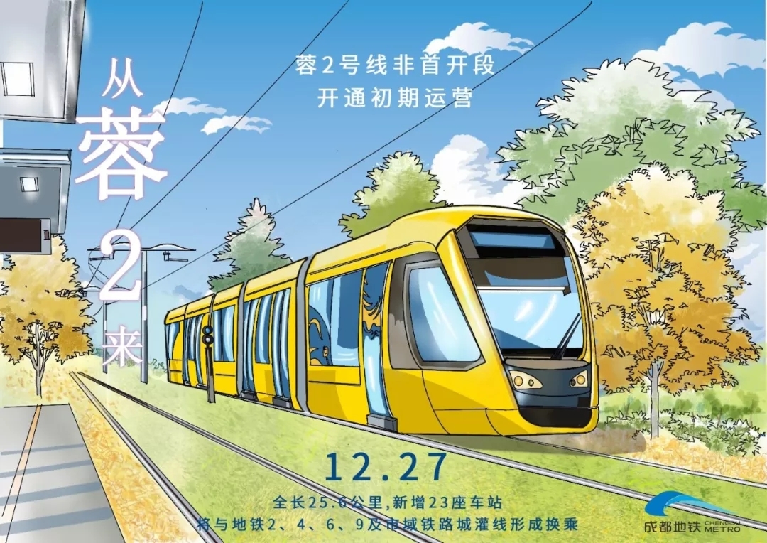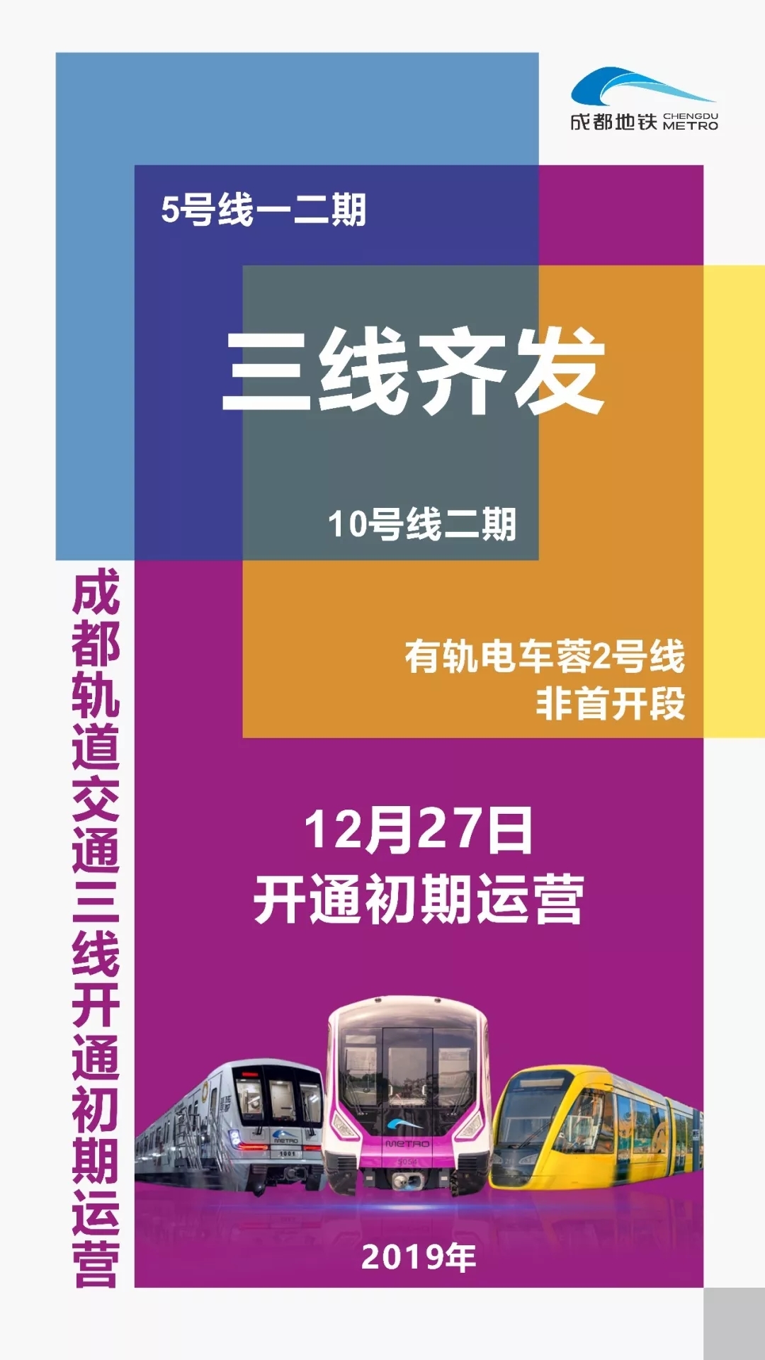 官宣!成都地铁5号线、10号线二期、有轨电车蓉2号线非首开段12月27日10点开通