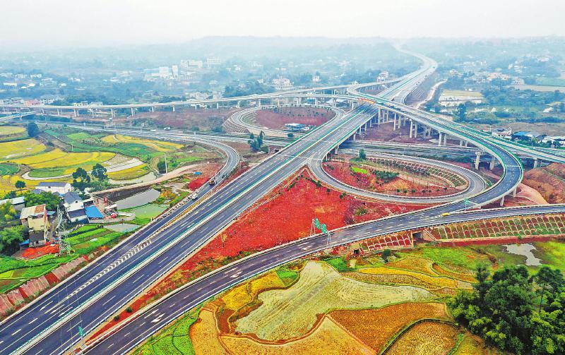 12月25日航拍的荣泸高速特兴枢纽互通,它与成自泸赤高速公路形成互联互通。 本报记者何海洋摄