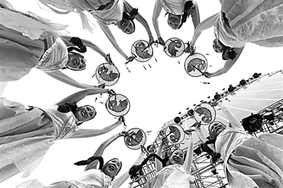 文化志愿者在进行民俗舞蹈表演。颜怀峰摄/光明图片