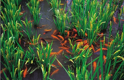 2005年,浙江青田稻鱼共生系统被联合国粮农组织列为首批全球重要农业文化遗产保护试点。当地农民根据水稻的生长周期,把鱼放到稻田里饲养,可以同时收获稻米和田鱼。一方面,鱼为水稻除草、除虫、翻松泥土,其排泄物可成为肥料;另一方面,水稻为鱼提供了食物来源和庇护场所,形成了稻鱼共生的生态循环系统。这不仅减少了农作物对农药化肥的依赖,也保证了农田的生态平衡。自公元九世纪开始,这里一直保持着这种传统的农业生产方式——“稻田养鱼”,并最终发展出独具特色的稻鱼文化。