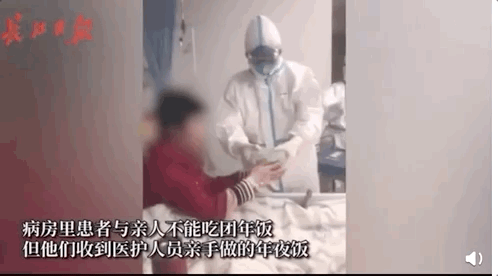 病房里,患者与亲人不能吃团年饭,但他们收到医护人员亲手做的年夜饭。