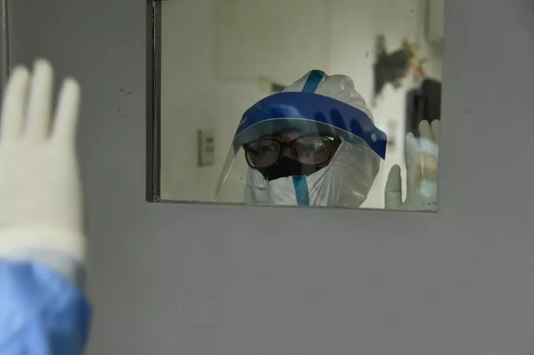 一位全副武装的医生,望着3米外的女儿,留下了热泪!