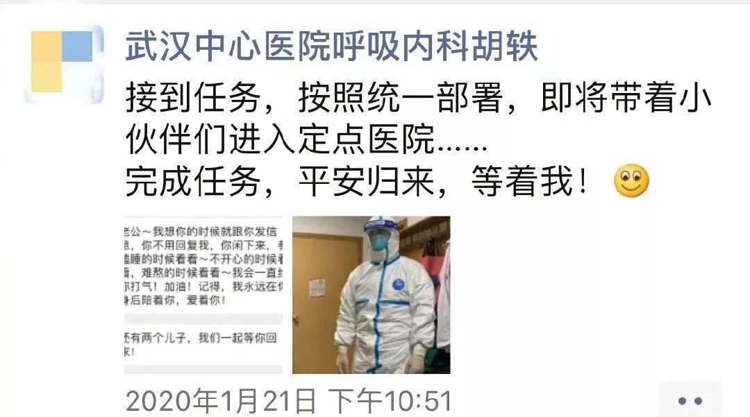 春节,武汉医院的医生,第一时间返回医院。出发前,他发了这样一条朋友圈,上面是妻子满满的叮嘱: