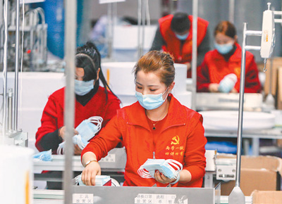 “我们党员带头加班加点,分两班倒,机器满负荷运转。”看着一摞摞码好的口罩,宋海英松了口气。28日,6万只防护口罩装车,发运至抗击疫情一线。