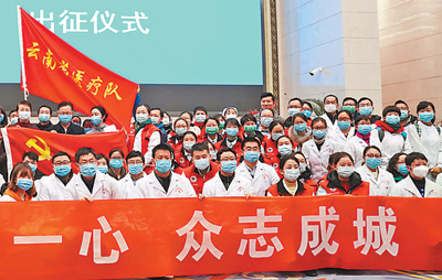 27日,138名从云南6所医院抽调的医务人员组成云南首批援助医疗队赶赴武汉。 |