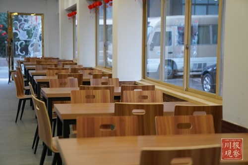永兴巷集中办公区食堂于去年底完成更新改造,现有餐位160个,节前中午约400人就餐。“以前食堂采取自助用餐形式,高峰时坐得满满。”李航说,为避免集中用餐,节后调整为由食堂服务人员统一打餐后,干部职工再将餐盒带回办公室分散就餐。