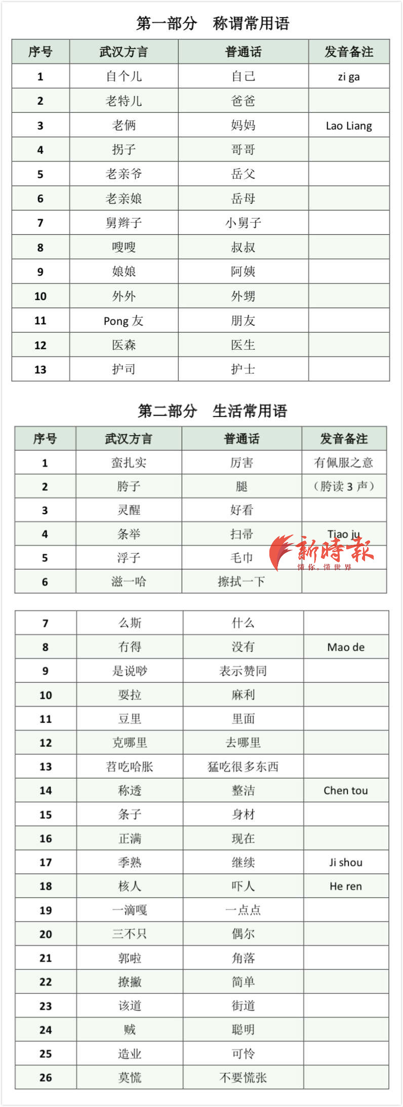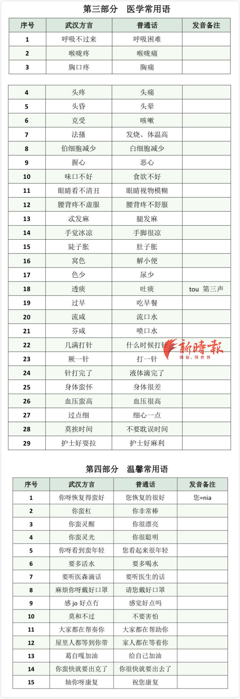 以下是《国家援鄂医疗队武汉方言实用手册》