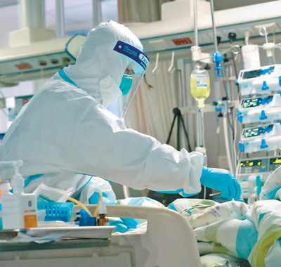 2月6日,重庆市璧山区人民医院感染疾病区的监护室里,疫情防控专家在查房。刘新吾 胡悦建摄影报道