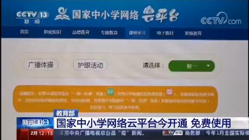 央视网消息:为支持全面打赢防疫阻击战,服务全国近1.8亿中小学生居家学习使用,经过紧密筹备,教育部整合国家、有关省市和学校优质教学资源,国家中小学网络云平台今天(17日)正式开通,免费供各地自主选择使用。