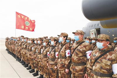 一批增援武汉的军队医护人员抵达武汉天河机场。新华社发