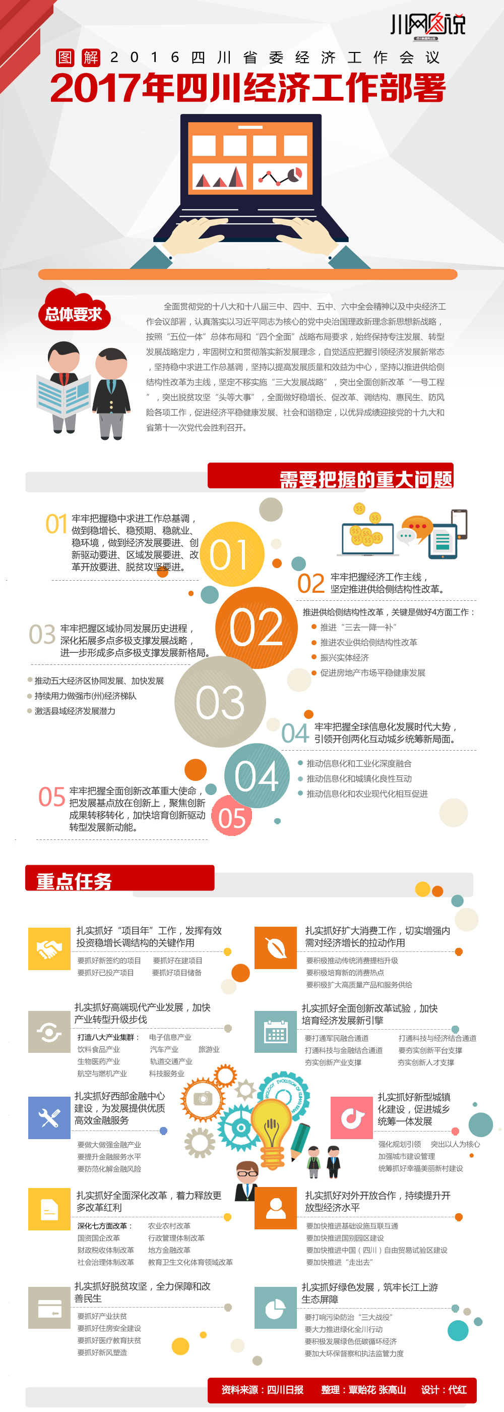 会议指出,明年将召开党的十九大和省第十一次党代会,是实施“十三五”规划的重要一年,也是推进供给侧结构性改革的深化之年,做好经济工作十分重要。我省面临的国内外环境依然错综复杂,经济下行压力依然较大,在经济总量、产业结构、区域发展、实体经济、对外开放、环境承载等方面还存在一些亟待解决的矛盾和问题。同时,我省经济发展的有利条件也很多,面临融入“一带一路”、长江经济带建设、西部大开发等国家战略和国家实施成渝经济区区域规划、系统推进全面创新改革试验、获批设立自由贸易试验区、天府新区获批成为国家级新区、国家加大脱贫攻坚支持力度等一系列难得的历史机遇,这些重大机遇在我省交汇叠加,必将创造更加有利的发展环境。
