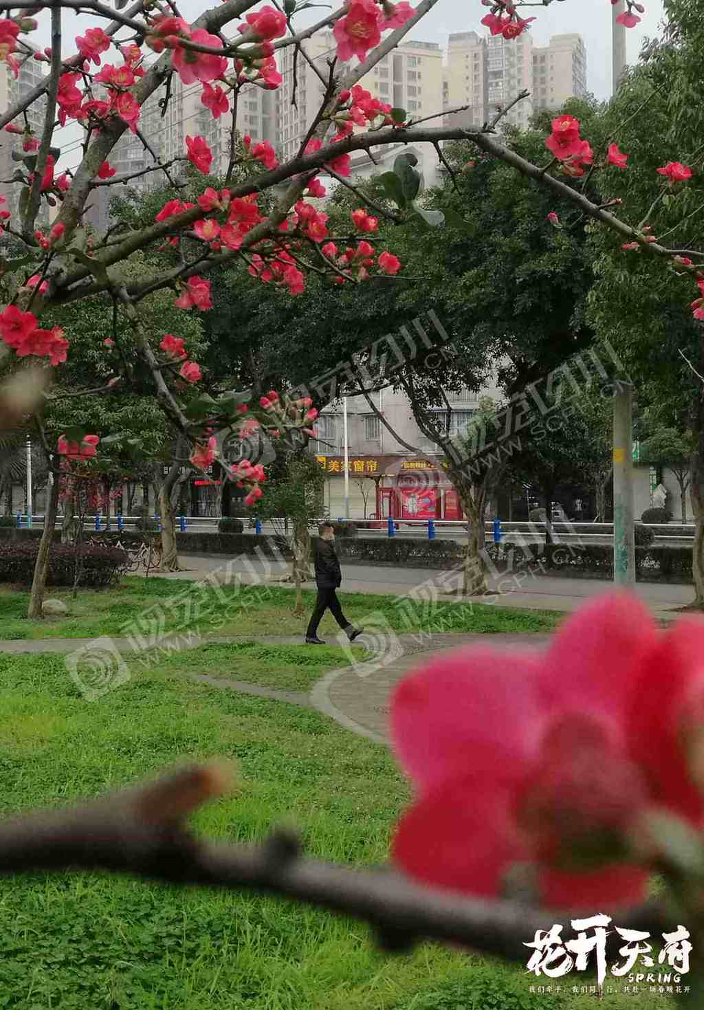 ▲暖阳之下的成都,海棠、桃花已吐露芬芳。