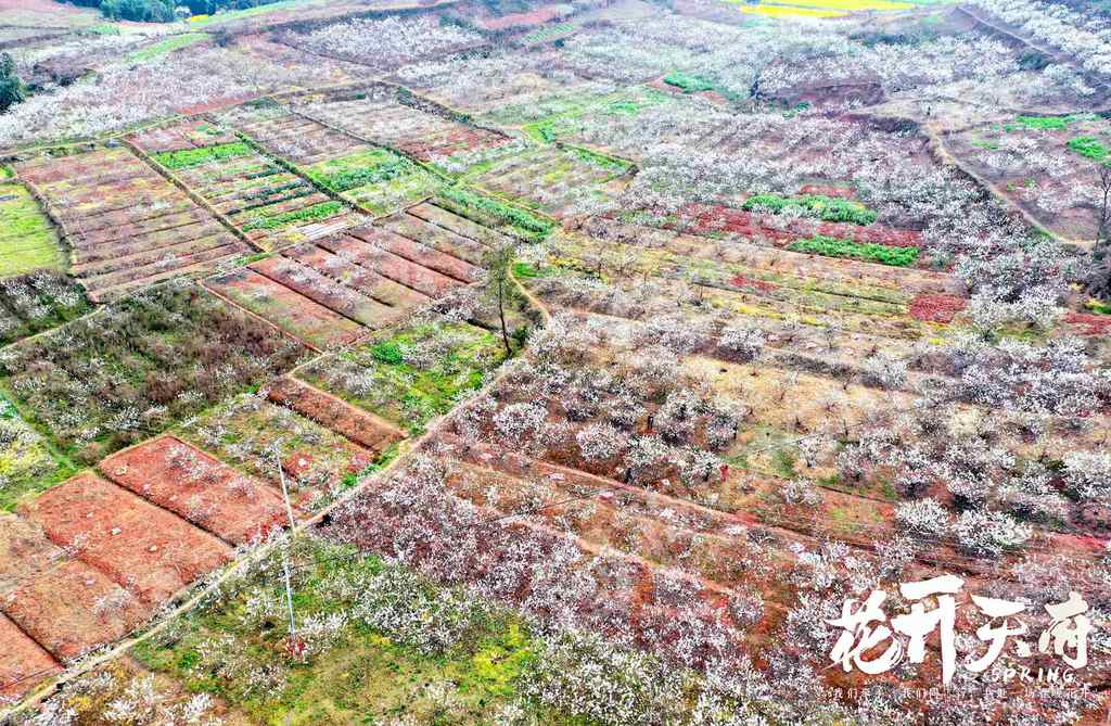 ▲华蓥市禄市镇小驴山村生态园的红梅、绿萼梅等梅花,灼灼其华,迎接春天到来。