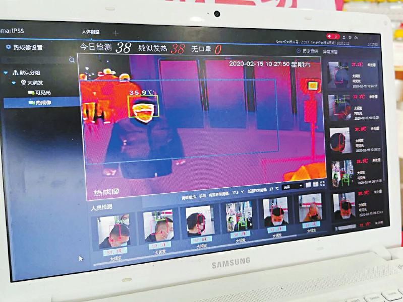 企业复工复产,为提高体温检测效率,不少企业购买了热成像测温系统。图为热成像测温系统屏幕。 图片由受访者提供
