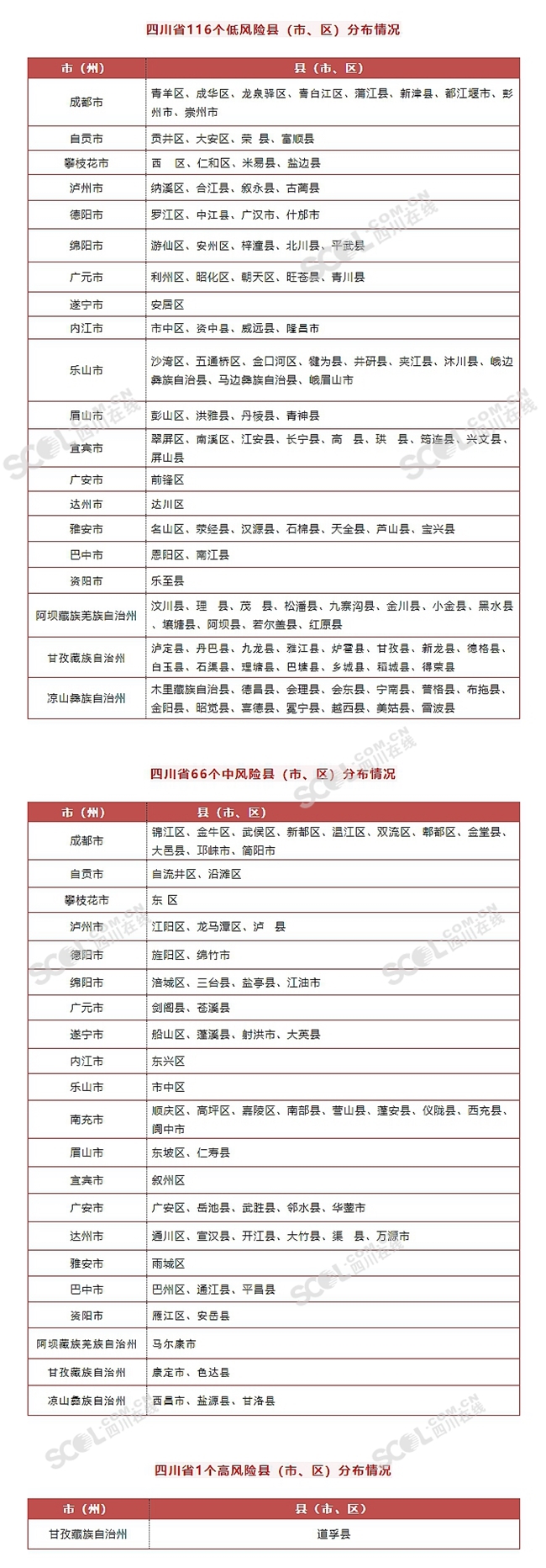 四川公布183个县(市、区)疫情分区分级情况 低风险116个中风险66个高风险1个