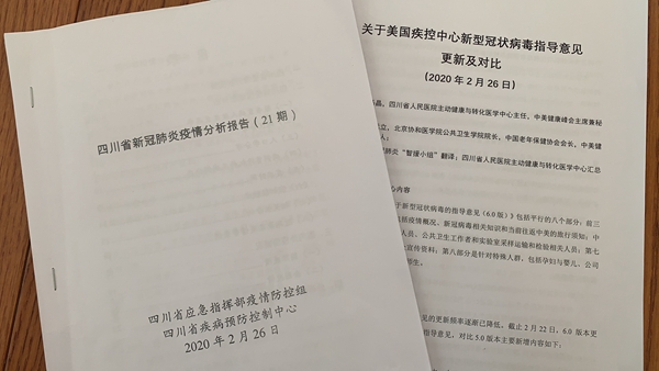 在2月26日会商会上,省卫健委国际交流中心通过翻译世界卫生组织有关新型冠状病毒疫情报告、新型冠状病毒战略防范和应对方案等重要动态,带来了世卫组织强调数学建模和高级分析的重要性;世卫组织认为,目前尚无新冠病毒通过食物传播的证据等信息。四川省医学科学院·四川省人民医院主动健康与转化医学中心的研判组跟踪国际疫情控制策略与方法,分享了6.0版本的美国疾控中心新冠指导意见,为做好孕产妇的新冠治疗,预防母婴传播等提供指导。