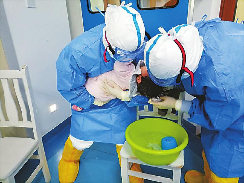 最小的患者只有三个月大,除了治疗,护士也帮着照顾孩子。 成都市公共卫生临床医疗中心供图