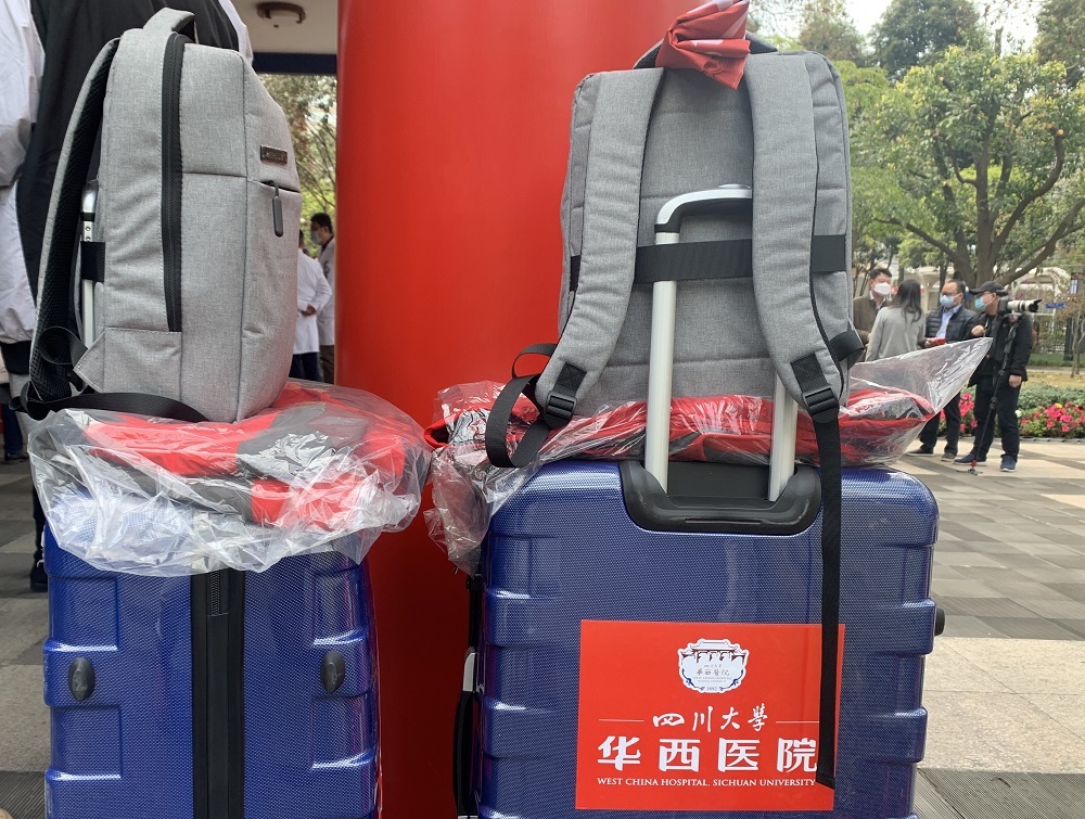 出征仪式上,华西医院院长李为民、党委书记张伟等院领导为两位专家送行。